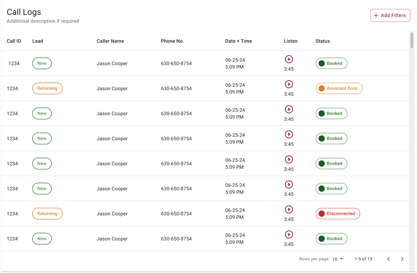 Data-Driven Insights: AI dashboard provides valuable insights on appointment trends, helping clinics optimize their scheduling practices.